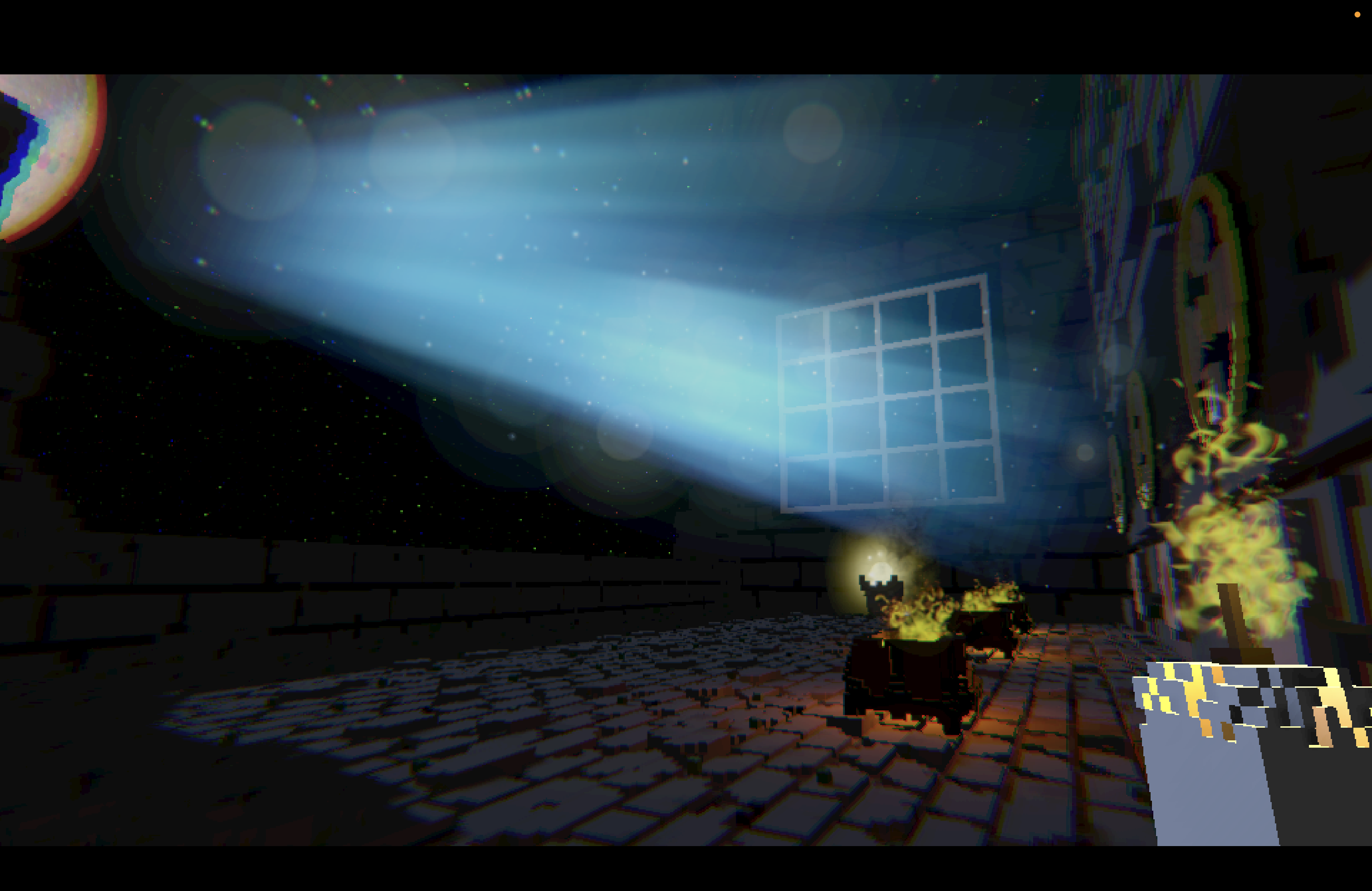 The atmosphere is great, and the filter blends perfectly with the voxel art style. I would have loved a bit more ambient sound and lore, but for a game jam entry, it is incredibly well-made. The puzzles are simple yet well-designed; and while the blue fire lacked a bit of a challenge (likely due to time constraints), it was still a very pleasant experience.